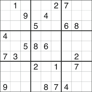 Game rules: Every column, row and box (3×3 marked by heavier lines) must contain all the digits from 1 to 9.