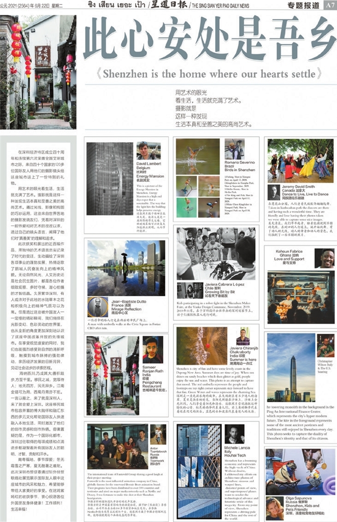 Xia Yuanjie szrbgracexia@126.com A TOTAL of 50 photos featuring life in Shenzhen through the lens of expat photographers have been exhibited around the world since June. The photo exhibition series has been a hit overseas with almost 10,000 visitors and over 180,000 online views as of July 5. The photo collection has been showed so far in six countries — Egypt, Thailand, Nigeria, India, Ghana and Kenya — with established liaison offices of China Council for the Promotion of International Trade Shenzhen Municipal Committee (CCPIT Shenzhen). The exhibitions have also been widely covered by media outlets and social media to spread Shenzhen’s charm to the world. The 50 photographs exhibited were selected from the winning works in the 2nd Expats Eye Shenzhen Photo Contest hosted by the Information Office of Shenzhen Municipal Government and organized by EYESHENZHEN.com and Shenzhen Daily. CCPIT Shenzhen partnered with Shenzhen Daily to hold the photo exhibition’s international tour in a bid to showcase the achievements of the reform and opening-up policies and further improve the city’s international influence. Despite the COVID-19 pandemic physically impeding cross-border communication, the cultural exchange between Shenzhen and foreign countries is still booming. Foreign visitors enjoyed and appreciated the photos depicting China’s technology hub and they were stunned by the transformation of one of China’s megacities within four decades. In order to help Shenzhen companies go global, the event has objectively and vividly showcased the city’s image. The photo exhibition series is a window to Shenzhen, showing the city as a perfect choice for foreign-invested enterprises. The next stops of the photo exhibition tour will be Tanzania and Mexico. |