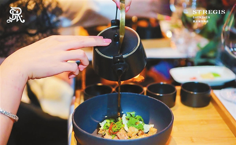 THROUGH this Sunday, the new executive chef of St. Regis Shenzhen Adam Lin is inviting epicures to a set dinner at the Elba Italian Restaurant on the 99th floor of the Kingkey 100 Building in Luohu District. Lin, a Singaporean chef with 23 years of experience and a true innovative spirit, has many a surprise for the most tasteful gourmets. Plus, guests can enjoy the breathtaking view looking out the restaurant’s French windows. Focusing on the creative use of choice ingredients, Lin, a believer and master of molecular gastronomy, has created a crossover menu comprised of the best of Italian, Singaporean and British cuisine made from fresh ingredients from around the globe. The traditional focaccia bread tastes refreshingly authentic, served with a delicate dish of basil, cheese and tomato dip sauce set in the shape and color of the Italian national flag. An appetizer of various seasonal mushrooms from Yunnan Province, cooked in the method of molecular gastronomy, is rich in flavor and texture as well as delightful to look at. For a course of Bak Kut Teh, a popular dish in Lin’s hometown, the chef has come up with the best ingredients and a ceremonial way to serve it. Served on a delicate tray, the herbal soup is in a teapot while the other ingredients, including the Iberian pork fillet, are served in cute small bowls and a bigger bowl, ready for the guest to put together before pouring the herbal soup on top. With the renowned steak Wellington, Lin has a creative approach by cooking the ingredients separately and serving them together on a plate. Therefore, the guests can get a glimpse of the makeup of this mysterious dish, as they enjoy the tender steak fillet, rich smooth foie gras and a bit of crunchy baked pastry, accompanied by savory truffle and cheese sauce. Then, there is the traditional Italian pasta served with deep sea tiger shrimp and sea urchin, a coconut-flavored sorbetto with bird’s nest served in a coconut-shaped bowl made of chocolate, and also choice wines to go with the dishes. Meanwhile, guest bartender Gordon Guo is ready to entertain partygoers with five different cocktails at the St. Regis Bar, and a sumptuous buffet is served at the hotel’s Social All Day Dining Restaurant.(Debra Li) |