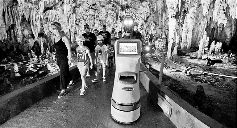 BILLED as the world’s first robot tour guide inside a cave, Persephone has been welcoming visitors since mid-July to the Alistrati Cave in northern Greece, 135 kilometers northeast of the city of Thessaloniki. The multilingual robot covers the first 150 meters of the part of the cave that is open to the public. In the remaining 750 meters, a human guide takes over. The robot was named Persephone because, according to one version of the ancient Greek myth, it was in a nearby plain that Pluto — the god of the underworld who was also known as Hades — abducted Persephone, with the consent of her father Zeus, to take her as his wife. The robot can give its part of the tour in 33 languages and interact at a basic level with visitors in three languages. It can also answer 33 questions, but only in Greek. Nikos Kartalis, the scientific director for the Alistrati site, had the idea of creating the robot when he saw one on TV guiding visitors at an art gallery. Seventeen years later, “we got our funds and the robot guide became a reality,” Kartalis said. The robot was built by the National Technology and Research Foundation and cost 118,000 euros (US$139,000). “We already have a 70 percent increase in visitors compared to last year since we started using” the robot, says Kartalis. “People are enthusiastic, especially the children, and people who had visited in the past are coming back to see the robot guide.” “It is something unprecedented for them, to have the ability to interact with their robot by asking it questions and the robot answering them,” he said. The robot moves along a walkway, passing through an ornate landscape of stalactites and stalagmites. These varied formations can reach 15 meters tall and are seen throughout the cave’s nearly 1 kilometer walkway, which is accessible to people with limited mobility. Persephone, with a white body, black head and two luminous eyes, moves on wheels, guiding visitors to the first three of eight stops along the walkway. She can do two more stops, but her low speed slows down the tour, which is conducted in three languages simultaneously. The robot begins by saying: “My name is Persephone, I am the daughter of the goddess Demeter and the wife of Pluto, the god of the underworld. I welcome you to my under Earth kingdom, the Alistrati Cave.” (SD-Agencies) |