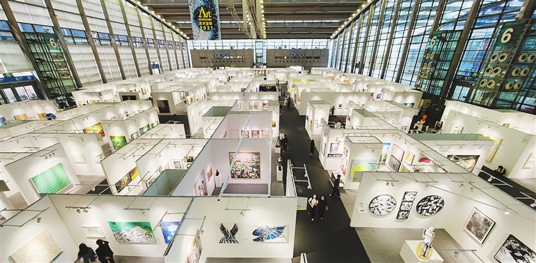 VARIOUS contemporary artworks such as paintings, sculptures, decorations, photographs and videos are on display at Art Shenzhen 2021. The exhibition kicked off at the Shenzhen Convention and Exhibition Center in Futian District on Thursday and will last until Sunday. A total of 72 art galleries and art institutions from 12 countries have gathered together at the exhibition. ?(SD News) |