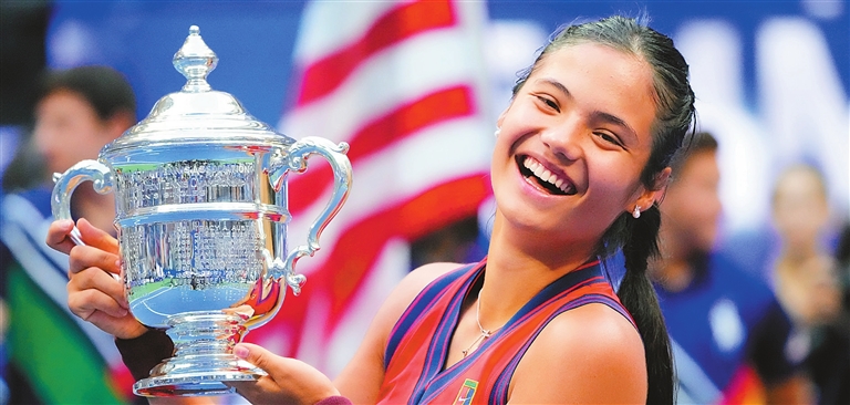British tennis player Emma Raducanu has accomplished one of the greatest sporting achievements of all time — winning the U.S. Open at just 18. Raducanu defeated Canadian teen Leylah Fernandez in straight sets on Saturday, becoming the youngest grand slam winner since Maria Sharapova won Wimbledon in 2004 at the age of 17. She is also the first player in history to win one of the top four tournaments after gaining entry by fighting through qualifying rounds. Her victory made the front pages of newspapers around the world on Sunday and Monday, including The New York Times and The Guardian. Following her win, U.K. Queen Elizabeth II congratulated the teenager, saying: “It is a remarkable achievement at such a young age, and is testament to your hard work and dedication.” Toronto born Raducanu was born on November 13, 2002 in Toronto, Canada, to a Chinese mother and Romanian father. Having moved to England at the age of 2, she took up tennis at the age of 5. But back then it was just one of many after-school activities her parents would take her to. From ballet lessons with her mum to dirt biking with her dad, eventually her schedule became increasingly focused on tennis. At the age of 16 she made the decision to become a professional tennis player. Emerging star After making her name with a wildcard appearance at the WTA Nottingham Open, Raducanu made her main draw Grand Slam debut as a wildcard entrant to the 2021 Wimbledon Championship. It was there that she became the youngest British woman to reach the last 16 in the open era and saw her ranking increase from 338 in the world to 186. She then reached the final of the WTA 125 tournaments event in Chicago and took her ranking to 150 in the world. Raducanu has really announced herself as a future star with her performances at the 2021 U.S. Open — which she won in incredible fashion. It was there that she became the first qualifier ever to reach the last four of the U.S. Open. The British tennis sensation did not drop a single set in New York and became 1.8 million pounds (US$2.5 million) richer after her win on Saturday evening. A hardworking student James Carlton is the manager at Bromley Tennis Center where Raducanu trained from the ages of 10 to 16. He would often coach on the court next to her and see her training. “She’s incredibly single-minded and determined,” he told Sky News. “She works very hard. The center is next to her school so she would be here before, after, and sometimes during.” The young athlete in June got her A Level results — an A+ in maths and an A in economics. Despite being a full-time student, the tennis star’s training schedule would be three or four hours on court every day, followed by extra time in the gym, Carlton explains. “We would often see her working on her schoolwork in between sessions,” he said. “Doing that while maintaining her schooling and academia is even more impressive.” A sensation in China Raducanu has become a hot topic on Chinese social media with the teenager thanking fans in Mandarin after her historic win in New York. Raducanu thanked her fans in fluent Mandarin through a video on social media shortly after the victory. “I wanted to say thank you,” she said. “I hope you liked watching my tennis. I’m really really excited right now. … Goodbye, I love you.” It had more than 200 million reads in 24 hours. Xinhua praised her tenacity and celebrated her Chinese heritage. It pointed out that Raducanu had received training at the sports academy in Shenyang, her mother’s home town.(SD-Agencies) |