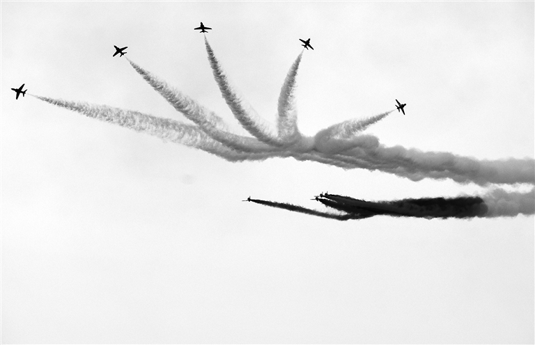 This photo taken Sunday shows an aerobatic performance during the Malta International Airshow in Qawra, Malta. Aviation enthusiasts were in for a treat over the weekend as the Malta International Airshow got under way with some 50 aircraft from around the globe, some of which graced the skies with shows of aerobatics. Xinhua |