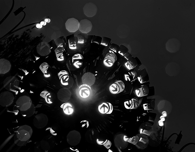 The installation “Traffic Light Flower” by German artists Johannes Brunner and Raimund Ritz is seen in Munich, Germany, on Tuesday, while the leaders of Germany’s Social Democratic Party, Free Democratic Party and the Greens party are seeking to form a so-called “traffic light” coalition. Reuters via Xinhua
