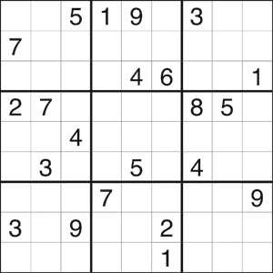 Game rules: Every column, row and box (3×3 marked by heavier lines) must contain all the digits from 1 to 9.