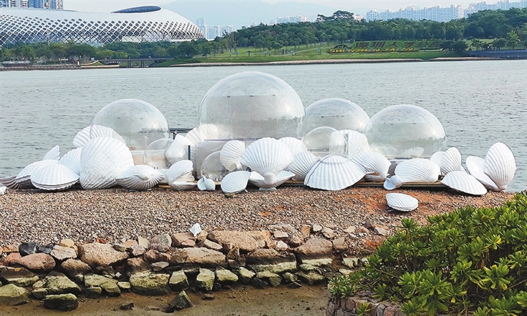 CHINESE artists have brought 15 public artworks to the Shenzhen Wave — 2021 Shenzhen Bay Public Art Season at Talent Park in Nanshan District, reflecting their thoughts on urban life and nature. “The public art season not only focuses on the artists’ innovative art practice but also stresses the public’s role in the public art. We hope Shenzhen residents can get close to and interact with the artworks and express thoughts in Shenzhen’s urban development,” said Li Xiangqun, chief planner of the public art season that runs until Jan. 10, 2022. “The Shenzhen Bay Public Art Season adheres to academic studies, innovations and public participation. It not only presents cutting-edge artworks, but also invites the public to interact with these innovative works. Unlike indoor art exhibitions, the Shenzhen Bay Public Art Season offers aesthetic education to the public,” said Zhang Zikang, chief consultant of the event. (SD News) |