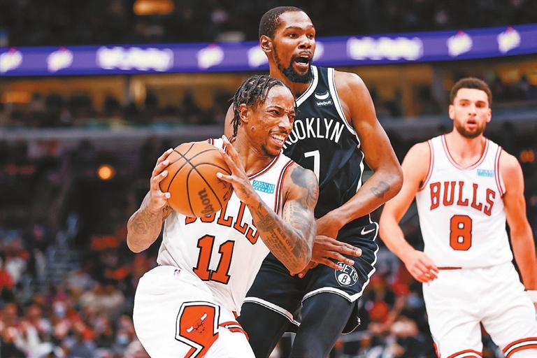 DEMAR DEROZAN scored 28 points, Zach LaVine added 24 and the Chicago Bulls used a 42-point fourth quarter to pull away for a 118-95 victory over the Brooklyn Nets on Monday night. Rookie Ayo Dosumnu had 15 points and played a key role in the late rally as Chicago snapped a two-game losing streak. Kevin Durant, who entered as the NBA’s leading scorer with a 28.6 average, had 38 points but Brooklyn had its five-game winning streak snapped. LaMarcus Aldridge added 19. The Nets had played Sunday in Toronto and appeared to run out of gas late. Brooklyn held a 78-76 edge entering the final quarter. Aldridge hit a pair of free throws to open the scoring in the fourth, but Chicago responded with 13 straight points to take command. DeRozan had back-to-back jumpers to tie the score at 80 and Dosunmu put Chicago back on top with a free throw. Dosunmu then converted a three-point play on the next possession to make it 84-80. Chicago stretched the lead to 89-80 before Durant scored the Nets’ first field goal of the fourth with 7:46 remaining. Alex Caruso countered with a 3-pointer to stretch the lead to double digits for the first time at 92-82. (SD-Agencies) |