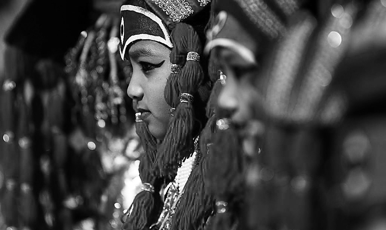 Girls dressed as living goddess Kumari take part in a Hindu holy ritual on the occasion of World Children’s Day in Kathmandu, Nepal on Saturday. Xinhua