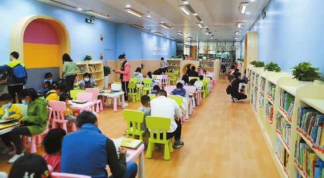 The young readers’ area, serving those under 13, reopened on Saturday at the Shenzhen Library after an upgrade and expansion. Separated into three parts, the area has added 60 percent more seats to accommodate nearly 200 youngsters sitting and reading in a space measuring nearly 1,000 square meters. A “Fun House,” equipped with all types of educational toys and books made of various materials like wood and cloth, has been turned into a paradise for kids under 3. The area is also equipped with a baby care room where moms can breastfeed or change their kids’ diapers. A picture book area, occupying an area of more than 200 square meters, offers some 70 seats and well-selected books for kids aged 4 to 6. Many of the books in the area have won the Caldecott Medal, the Hans Christian Andersen Award and other honors. Another area serves children aged 7 to 12. With spacious rooms, warm décor and furniture made of safe materials, this area provides a safe haven for young readers to learn and have fun. On the day of the opening, two fun activities were held to entertain kids. One incorporated a magic show with book reading; the other invited children to guess the names of picture books based on the clues provided. The first 50 lucky young readers who signed up for a library card were each gifted with a souvenir. Saturday also marked the launch of a “Reading in Late Fall” campaign. Twenty young readers who borrowed the largest number of books from the library network in the past year were awarded with trophies and certificates, while the top two “reading stars” shared stories about how books enriched their lives. The young readers’ area allows a maximum of 300 visitors simultaneously in accordance with COVID fighting regulations. Those aged 13 and above can apply for an adult library card. (Li Dan) |