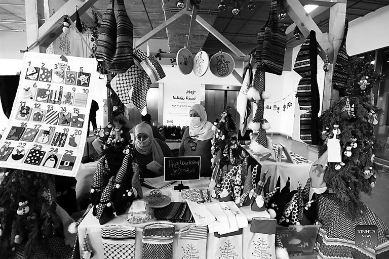 People participate in a winter bazaar in Amman, Jordan, on Sunday. The United Nations High Commissioner for Refugees (UNHCR) launched Sunday its 4th “With Refugees” winter bazaar in Amman to support refugees across Jordan. Xinhua