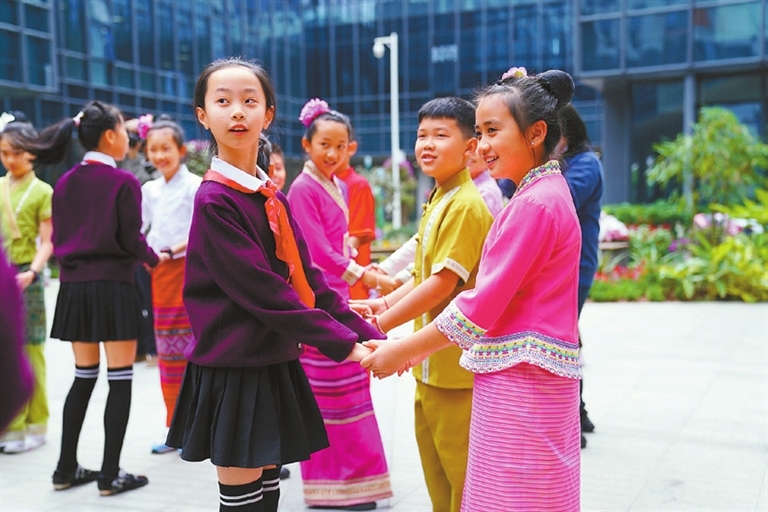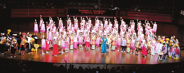 Lin Songtao 254238712@qq.com CHILDREN of the Dai and Korean ethnic minorities, traditional ethnic music inheritors from Yunnan and Jilin provinces, the Golden Treelet Multiethnic Children’s Choir of Shenzhen Concert Hall and the Lily Girls’ Choir of Shenzhen Senior High School gathered for the Multiethnic Children’s Choirs in Concert at Shenzhen Concert Hall on Sunday. Before the show, children from the Dai ethnic minority also had a tour at Splendid China﹒China Folk Culture Villages and interacted with local students. The two ethnic children’s choirs, namely Chanson de Montagne Korean Ethnic Children’s Choir and Chanson de Montagne Zhangha Dai Ethnic Children’s Choir, were established under the program “Fly Over the Rainbow.” It invites children from ethnic minorities to show on stage each year. |