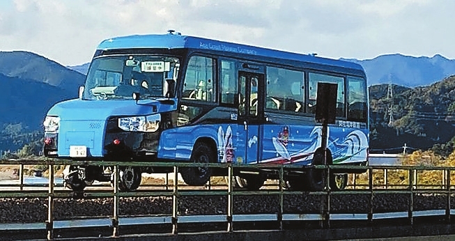 The world’s first dual-mode vehicle, or DMV, which can travel both on highways and railroad tracks, made its public debut on Saturday in Kaiyo, Japan. The DMV runs on traditional rubber tires on the road, but also has steel wheels that allow it to easily switch from asphalt to railway tracks, turning the vehicle from a minibus into a train carriage. The vehicles will run on a 50-kilometer course connecting the town of Kaiyo in Tokushima and the city of Muroto, Kochi Prefecture, of which 10 km will be on a railway track. Three will be in operation, each with a capacity of 23 passengers and crew. The company will have its new vehicles circulate along the coast of Shikoku in southern Japan. The vehicle is operated by Asa Coast Railway Company, which sees it as a way to help small provincial towns like Kaiyo, where local transportation firms are struggling to make ends meet. “This vehicle can reach the locals as a bus and carry them onto the railway as well. Especially in rural areas with an aging population, we expect it to be a very good form of public transport,” said CEO Shigeki Miura. The DMV is powered by diesel fuel and can reach speeds of 60 kph on the tracks, and 100 kph on the road. The vehicles may also be useful in natural disasters such as earthquakes, which may leave sections of roads or railway tracks unusable. The DMV is lighter than a traditional train, which, according to the company, means it requires less fuel and is easier to maintain. (SD-Agencies) |