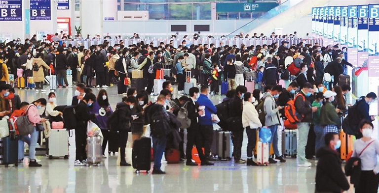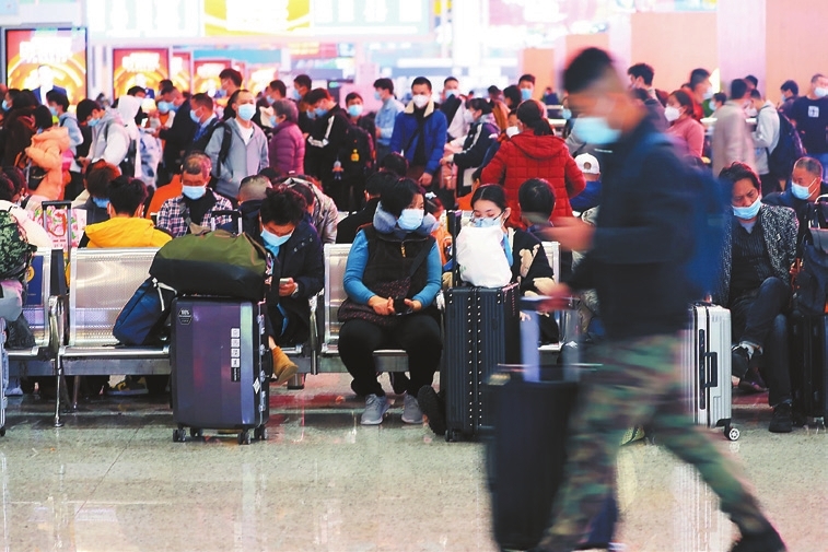 SHENZHEN’S transport terminals hope for a safe and stable Spring Festival travel season that officially started Monday by implementing strict COVID-19 prevention measures and improving its services.The annual Spring Festival transport season will last 40 days until Feb. 25. During this period, Shenzhen North Railway Station will operate 285 pairs of trains a day, 24 pairs more year on year, including 43 pairs running along the Ganzhou-Shenzhen High-Speed Railway. (SD-Agencies) |