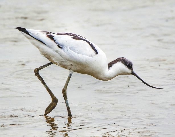Shenzhen hosts dozens of migratory bird species during the winter months, and if you have been to the Shenzhen Bay Park area to observe them, you might have come across the fabulous pied avocets. The pied avocet (Recurvirostra avocetta), measuring 45 cm long, has long thin legs. The birds move their curved pointy beak (about 8 centimeters) from side to side in shallow waters, using it as a shovel in search of small invertebrate animals like insects and crustaceans hiding in the mud. The word “pied” in animals is generally associated with having black and white colorations, and the pied avocet is aptly named. Its entire body is covered by white feathers except that it has a black cap over its head, black feathers on the tip of the wings and also a black tail. Pied avocets start their breeding season around April and it continues until August. During that time, they build their nests in large colonies on open areas covered with short vegetation. They will normally lay up to four eggs per clutch that both parents will incubate for about three to four weeks. Chicks are precocious and ready to go on their own really quick. Migration is important for the survival of the species and it’s our job to help in the preservation of their habitats. That way, they can enjoy the warm shores of our city every winter for many years to come. 2021.12.24 A pied avocet is searching for prey in the Shenzhen Bay area in Nanshan District. |
