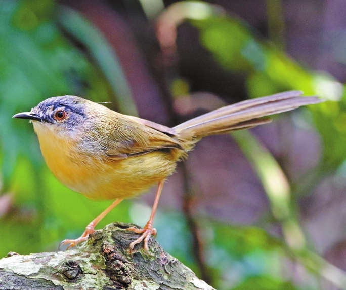 Among the most frequently seen birds in Shenzhen are the fantastic yellow-bellied prinias (Priniaflaviventris). The prinia is a small 12- to 14-cm-long bird with a dark gray hood covering its head and a distinctive lighter coloration around the eyes, with an olive green back plumage and a beautiful yellow belly. These birds can be seen bouncing around bushes and long grasses near wetlands or rivers. Another visible characteristic of prinias are their strong long legs that help them hold onto any sort of vegetation and a beautiful long tail they move up and down while flying and during their mating rituals. Since prinias move mainly through grass and bushes, their main prey are small insects and larvae they can easily find while moving, like flies, beetles and grasshoppers. The yellow-bellied prinia starts its mating season at the beginning of spring which continues through the end of summer. They are found to be highly adaptable to the conditions of the environment and build their nests wherever they find a suitable place to live. Females will lay up to four small red eggs of about 1.5 cm per clutch and both parents will help incubating and feeding the youngsters once they hatch. I personally find this bird absolutely amazing and never hesitate to follow it and take a picture or two when I have the chance. 2022.03.05 A yellow-bellied prinia perches on a tree at Wutong Mountain in Luohu District. |