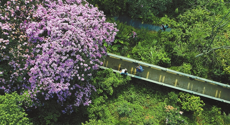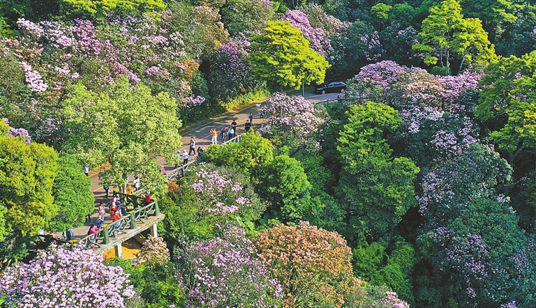 AS commonly seen flowers in China, the rhododendrons not only decorate the spring scenery but are also admired in ancient and modern Chinese poems, thanks to their charming beauty. Now more than 100,000 trees of rhododendron moulmainense are in full blossom on Wutong Mountain where an annual flower fair is being held through mid-April. According to the Seventh Rhododendron Moulmainense Fair of Wutong Mountain profile, an ecological conservation of rhododendrons has been carried out for more than 10 years in the mountain and over 700 species have been introduced. Rhododendron moulmainense on Wutong Mountain is the world’s only native highland rhododendron grown in a metropolis. The landscape of the brightly colored flowers has made the mountain a landmark in Shenzhen every spring. Visitors have easy access to climb the mountain via various trails after they get off the Metro at the Wutong Mountain South, Haishan or Shenwai Senior Campus stations. All visitors must show their negative nucleic acid test results issued within 48 hours. You are also invited to attend a photo or short video contest organized by the mountain; details of the contest with cash prizes can be found on the WeChat account “梧桐山風景區(qū)”; the submission deadline is April 13. (Cao Zhen) |