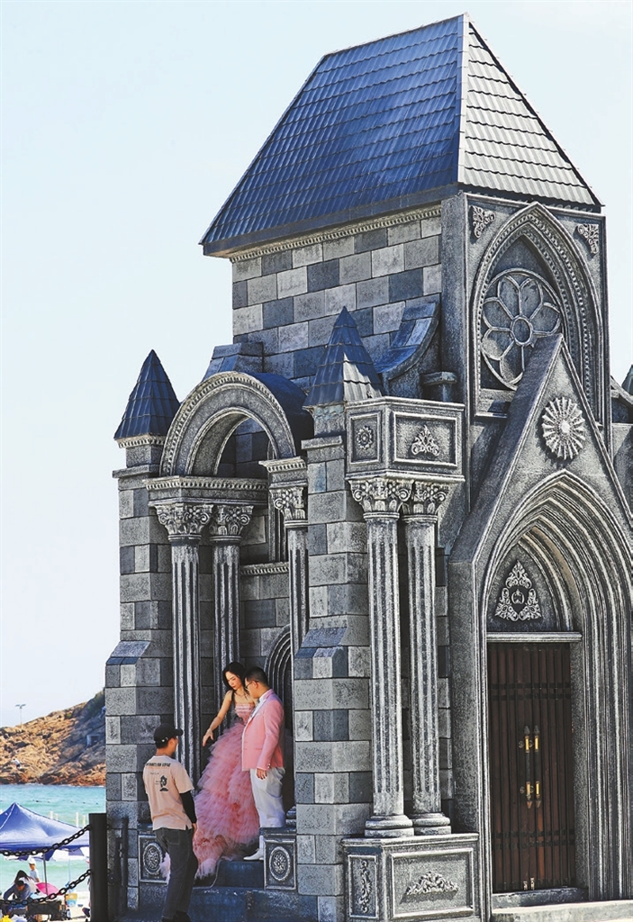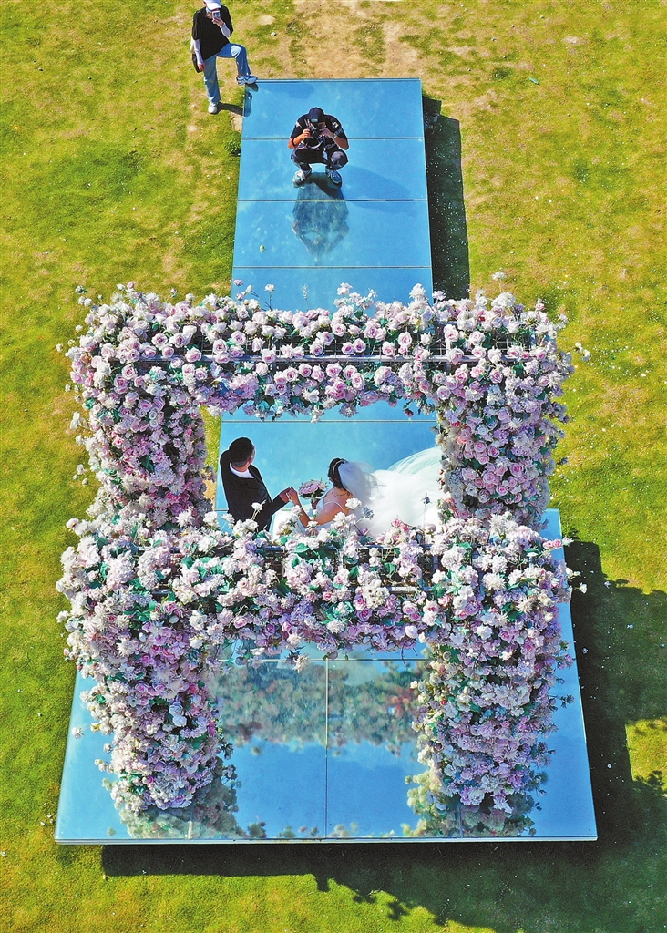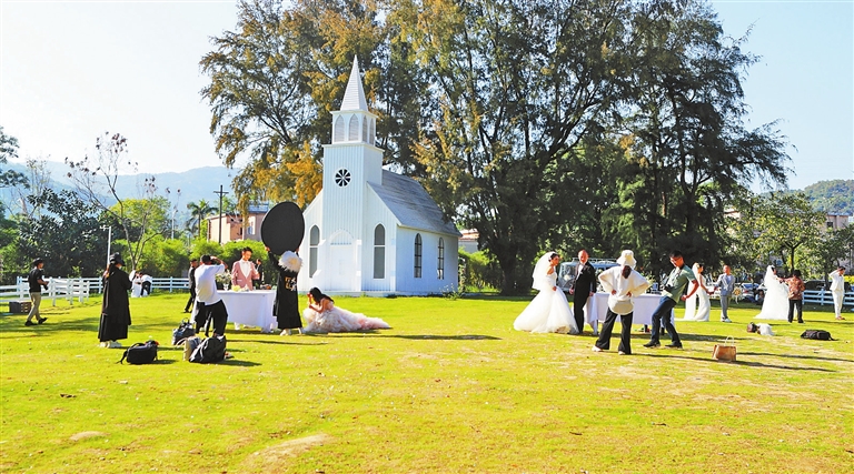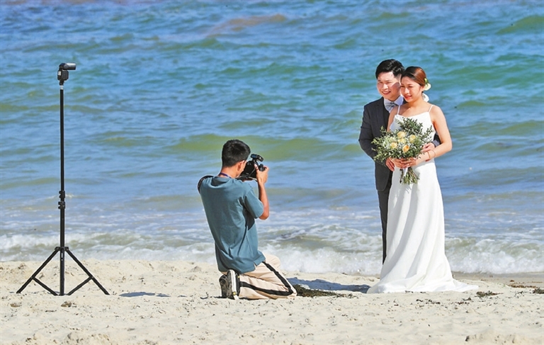 TAKING outdoor wedding photos in bright spring sunshine is the popular event recently. Lovers’ Island, which enjoys great sea views and has unique wedding decorations becomes the attraction for the newly-weds. The photos were taken at Lovers’ Island at Xichong, Dapeng New Area on Sunday.(SD-Agencies) |