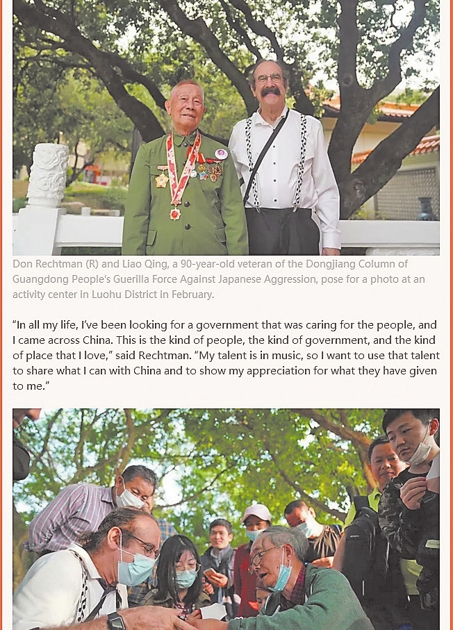 2021-07-01 Don Rechtman, a musician from California, the U.S., has created a song for China to celebrate the 100th anniversary of the founding of the Communist Party of China (CPC). The song draws inspirations from stories about the Dongjiang Column of Guangdong People’s Guerilla Force Against Japanese Aggression and is a tribute to the people who fought bravely to create the peaceful, happy life we lead today. Its title “In March Azaleas Bloom All Over the Mountain” is the depiction of a scene often found at Wutong Mountain in March. “In all my life, I’ve been looking for a government that was caring for the people, and I came across China. This is the kind of people, the kind of government, and the kind of place that I love,” said Rechtman. |
