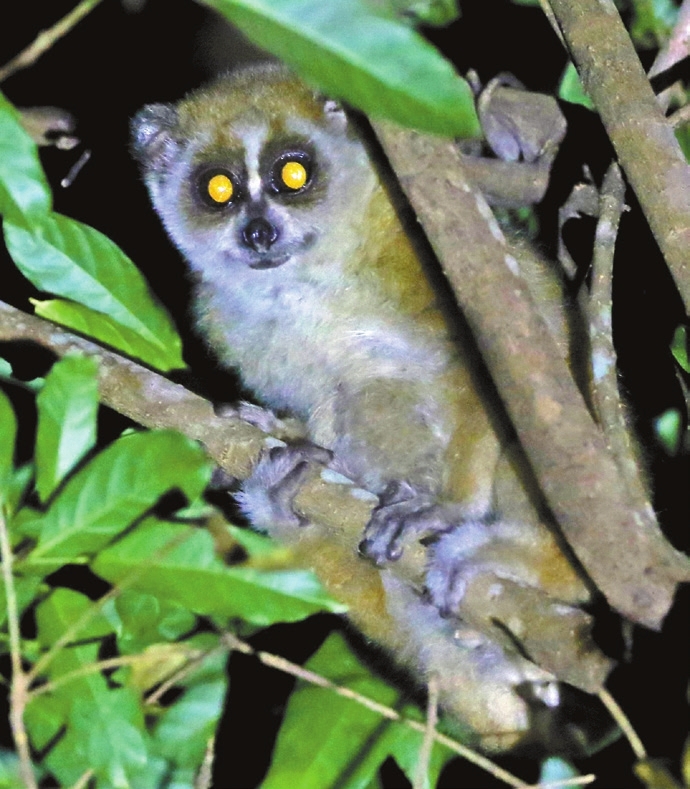 Fascinating as it may seem to you, our beautiful Shenzhen is not just about birds, or frogs, or snakes. In addition to the common animals you can see elsewhere, there are astonishingly unique animals living here as well that many people find it difficult to believe their eyes when they actually see them. One that I am talking about is a small mammal that inhabits the mountains of our city — the one and only pygmy slow loris (Xanthonycticebus pygmaeus). This very small primate is about 20 centimeters in length and scarcely 1 pound (0.45 kg) in weight. The pygmy slow loris is the smallest of all the loris species in the world and can be found only in a relatively small area in some parts of Vietnam, Laos, Cambodia and the southernmost part of China. It is a threatened animal on the IUCN’s (International Union for Conservation of Nature) red list, catalogued as vulnerable, with its population fast declining due to habitat loss and animal trafficking. Its body is covered by a beautiful reddish brown fur, and its long arms and legs are almost the same in length. It has very sharp claws. Its very short tail is not used as other primate species for hanging, holding or balancing their body. Instead, they use just their arms and legs to climb and hold to branches. Two huge round eyes make up the most remarkable feature of this species, providing the animal with sharp night vision. The pygmy slow loris is active during the night, climbing the trees in search of whatever crosses their way, earning themselves fame as opportunistic predators. Slow lorises also feed on fruits, leaves or even tree sap. The reproduction period of a female pygmy slow loris can fall any time between July and October, during which time she can only be fertile for about five days. If successful, a female will have a six-month pregnancy carrying either one or two babies at maximum. The protection and preservation of these small animals is in our hands. Let’s keep working hard to create a better environment for all the amazing animals our city hosts, not just for the benefit of our city but for the future of our world as well. 2021.11.02 A pygmy slow loris is seen in the mountains of Shenzhen. |