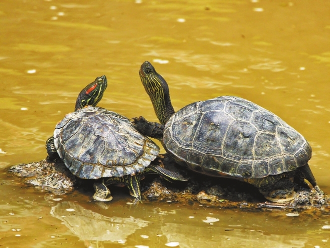 The fourth spot on our list goes to the Chinese stripe-necked turtle (Mauremys sinensis), a class-two protected species of China and considered to be extremely endangered by the IUCN. This beautiful reptile can be spotted in almost every water body in the city, but its numbers are declining mainly due to the introduction of the invasive pond sliders. People tend to buy this other species of turtle in markets and fairs to keep as pets but later on release them into nature, generating an irreparable damage to the healthy dynamics of the ecosystem.