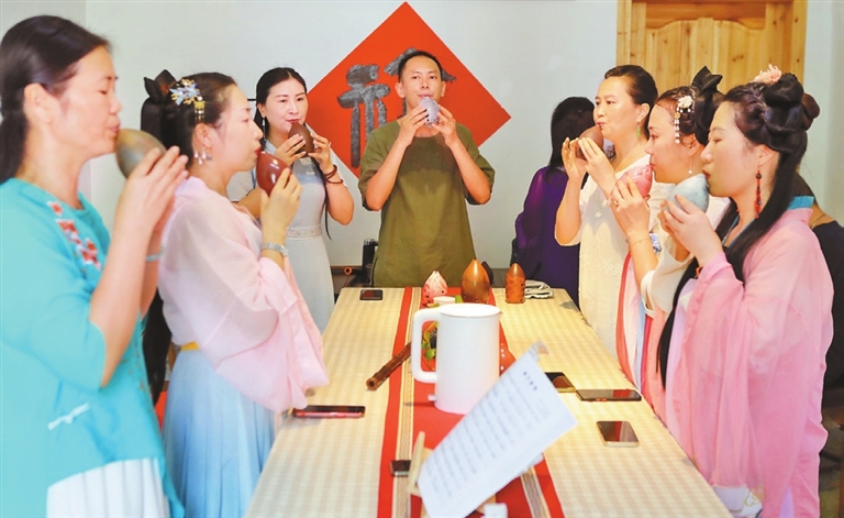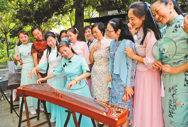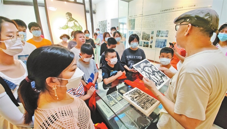 LONGHUA is famous for its charming old Hakka villages, some of which have been turned into art villages such as the Guanlan Printmaking Village and New Who Art Village for artists from around the world to open studios or do art-residency projects. In recent years, after renovation, Edixia Village, which is close to the Guanlan printmaking and New Who villages, has also attracted painters, musicians and craftspeople to open studios in the centuries-old Hakka houses. An open day event was held Sunday, inviting visitors to explore the village and connecting them with the arts. Some visitors wore Chinese Hanfu or cheongsam, some learned to make traditional Chinese moon-shaped fans, some attentively listened to the history of print art and guzheng art, and some enjoyed music played on the xun, a globular vessel flute that has thousands of years’ history. Built in 1736, Edixia Village is also the hometown of revolutionary printmaker Chen Yanqiao (1911-1970), a pioneer in modern Chinese printmaking and outstanding art theorist and educator. The Chen Yanqiao Exhibition Hall in the village used to be Chen’s old residence that was built during the late Qing Dynasty (1644-1911). From a young age, he had studied painting at an overseas Chinese-backed school in the village. (Cao Zhen) |