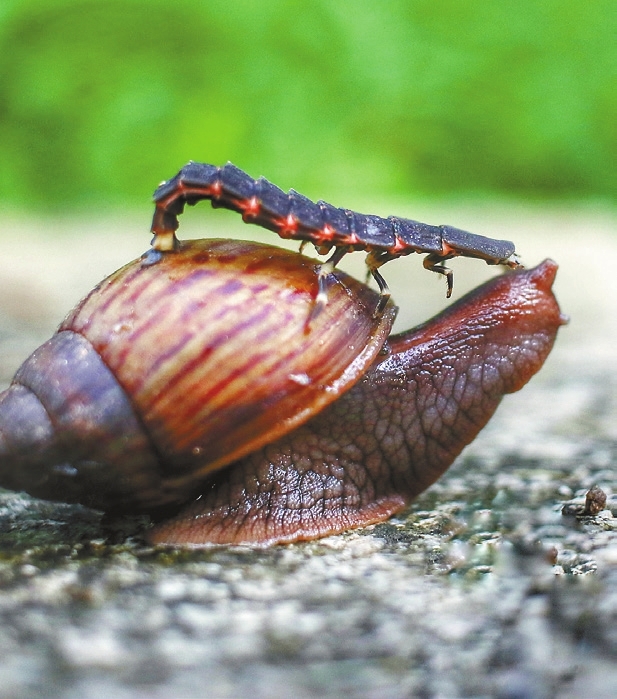 ONE of the most conspicuous species of invertebrate animals in Shenzhen and probably the one people encounter most frequently when walking in the city is the giant African snail (Lissachatina fulica), an extremely invasive species that was introduced to several countries in the world from its original East Africa initially as pets, a source of food, or by researchers that wanted to study the species, or in most instances and like many other animals, by traveling accidentally in the cargo of ships or planes. This mollusk is highly adaptable and feeds on almost any species of plant, other snails, or even worms. The snail is relatively big for a terrestrial mollusk, and its beautiful conic shell reaches a maximum length of 20 cm and a width of up to 12 cm. Due to its nature as an invasive species, the giant African snail doesn’t have natural predators in our city. However, some species have eventually learned to feed on them. Its predators in our town include giant centipedes, some insects like ants and beetles, rats, and even some birds like the greater coucal. However, its predation doesn’t come without a price, for this species is highly toxic due to the presence of deadly parasites in their digestive system, making It an unwanted meal for most of the species in Shenzhen. There is not much we can do as citizens to control the rapid growth of this fascinating species in our city; however, it serves as an excellent opportunity for us to understand the importance of maintaining our ecosystems free from any disturbance and to grow consciousness about the harmful effects of wild species trafficking, obtaining pets from the wild, and the introduction of foreign species into local ecosystems. |
