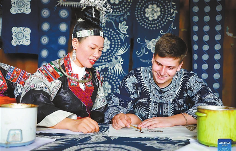IN front of the camera, Robert Adolf, a 25-year-old German, is learning horsetail embroidery techniques from the Shui people by stitching horsehair on a shoe in Sandu Shui Autonomous County, Guizhou Province. Adolf, fascinated by Chinese culture after watching the Disney animation “Mulan” in childhood, is now immersed in recording the cultures of China’s ethnic minorities by making documentaries. Hailing from Munich, Adolf came to China after graduating from university in 2017 and now works as a translator in Jiangsu Province. During his spare time, he prefers to visit ethnic areas and experience local cultures. He has visited many places across the country during his stay over four years. He likes sharing videos about local customs and amazing sceneries and has attracted over 2 million followers on short video platforms, including Douyin and Kuaishou. Intrigued by China’s rich and diverse ethnic cultures, Adolf decided last September to record the country’s ethnic minorities with his three vlogging friends during their tours. Their first stop was Guizhou, inhabited by 17 ethnic groups. “In some ethnic regions in Guizhou, even two neighboring villages have different costumes, dialects and celebrations, which is amazing,” the young man said. He experiences locals’ lives and records more details by living at their residences. So far, he has visited people of seven ethnic groups, including Miao, Dong and Shui. Adolf said despite the differences in cultures and customs, the people he met were warm and hospitable. When they shot videos in the villages, many villagers invited them to their homes for a meal. While filming the horsetail embroidery, Adolf acquainted himself with 58-year-old Wang Minzhi, who posts short videos on Douyin and sells local specialties via livestreaming. “In her 50s, she still keeps a young mind and passion for life, which moved me a lot,” Adolf said about Wang. The rich and diverse ethnic cultures bring him passion and motivation to record. “I don’t have a fixed filming plan, but I will never stop until I meet all the 55 ethnic minorities,” he said. (Xinhua) |