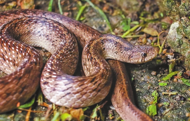 The Taiwan kukri snake (Oligodon formosanus) is a relatively small nocturnal reptile that can reach up to 60 centimeters in length. It has a distinctive mustard coloration decorated with blackish spots all over the body. Another unique physical trait of most kukri snakes is a beautiful set of irregular stripes over the head and face of the animal with a distinctive brown patch below each eye. The head of the snake is relatively small when compared with the rest of the body, and the body tends to be broader with a short tail. The underbelly is pale pink, extending through its entire body. The eyes show a big rounded pupil surrounded by a beautiful yellowish iris. The Taiwan kukri snake doesn’t possess venom glands, but that doesn’t necessarily make them harmless friendly snakes. They will become aggressive when bothered or handled, by striking and attempting to cut slashes with their teeth. In the shape of a particular type of knife called the kukri, the teeth have given the snake their name. Their specialized rear slashing teeth are perfect for egg cutting; therefore, one of their primary food sources is other reptiles’ eggs. They also prey on other animals they can get their teeth to along the way. Kukri snakes are strictly terrestrial and will wander across forested areas in search of prey. Kukris are common in some areas of our city but relatively uncommon in most of the parks. It is essential to help preserve their natural habitats so we can enjoy a healthy population of these amazing animals, as they make up an indispensable part of our city’s natural food networks. |