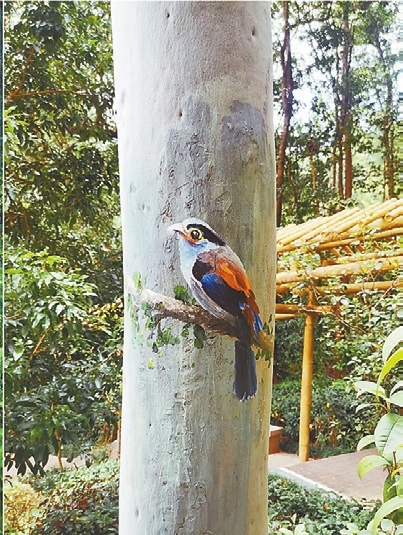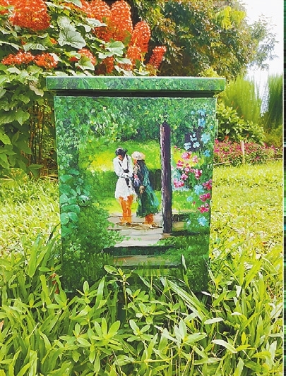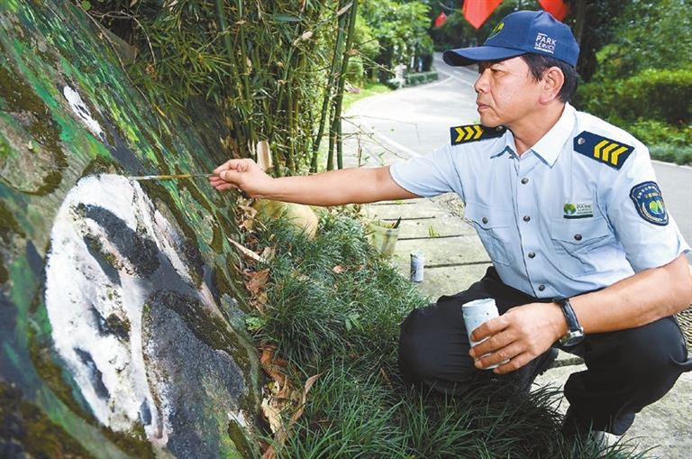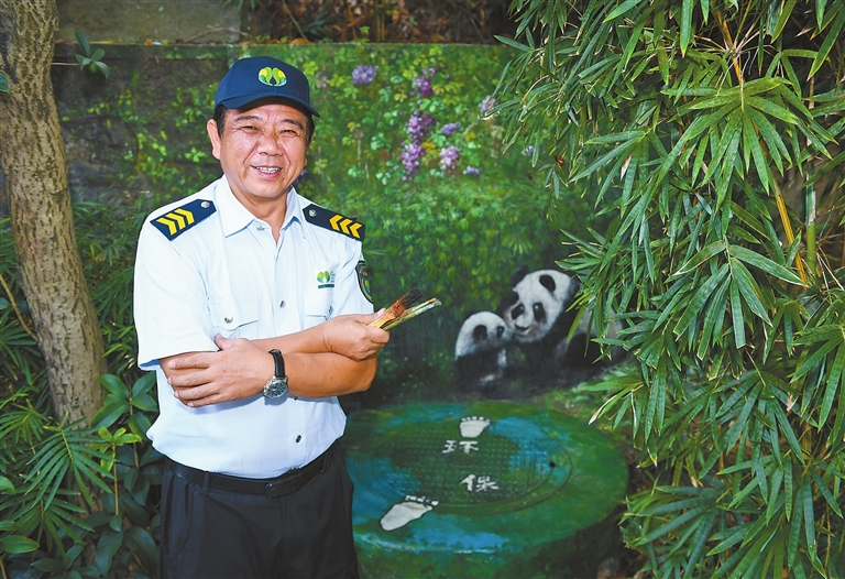 A “DEER” is wandering in the green bush, a “squirrel” is chewing nuts on a tree stump, two “white rabbits” are frolicking in the meadow, and a “marmot” is protruding its head from a ground hole. You are seeing these scenes not in a zoo but in some parks in Shenzhen. Li Ping, a Shenzhen Central Park security guard in his 50s, has amazed residents with his paintings of animals and plants in local parks. Over the past two years, he has drawn more than 300 paintings on tree stumps, manhole covers, electric boxes and walls, adding vitality and beauty to Shenzhen Central Park, Cuizhu Park, Lianhua Hill Park, Renmin Park and Shenzhen International Garden and Flower Expo Park. A native of Hubei Province in Central China, Li came to Shenzhen in 2019. With painting skills, Li had applied for jobs in Dafen Oil Painting Village but later worked as a security guard at Cuizhu Park in Luohu District. To make mundane manhole covers, electric boxes and tree stumps more infused into the beautiful environment of the park, Li began to paint on them and later was invited by more local parks to create paintings. (Cao Zhen) |