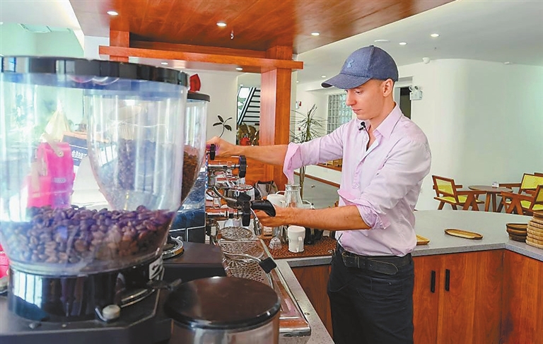 MIXING beer syrup, milk and espresso, Sebastian Hahn skillfully made a cup of beer latte which is a specialty drink of his cafe. “This tastes very special and I personally quite like it,” he said. Hahn, from Berlin, Germany, opened a cafe with his Chinese girlfriend this June in Haikou, Hainan Province, embarking on a new career. After graduating from Humboldt University of Berlin in 2011, Hahn had a good job in Berlin, in charge of quality management in a company. “I thought it’s not what I wanted to do for my whole life,” he said, “Why do only students go abroad and learn a new language? I can do it too.” So he quit his job. Having considered going to Brazil, Vietnam or Japan, he finally decided to come to China. “Hainan is the most southern part of China, and I wanted to have a life without winter,” he said. In 2014, Hahn traveled by train all the way from Berlin to Urumqi, capital of Xinjiang Uygur Autonomous Region, and then to Hainan. Originally, he planned to learn Chinese at Hainan University for one year. However, when he went back to Germany one year later he found that his Chinese was not good enough. He later returned to Hainan University and continued his language studies and pursued a master’s degree in tourism management. Hahn was diligent and managed to secure a Chinese Government scholarship. “That was a very good opportunity and I’m very thankful,” he said. After graduation in 2020, Hahn and his Chinese girlfriend decided to open a cafe, because “we love coffee and want to share our love for coffee with other people,” he said. It was not easy to transform their idea into reality. “We encountered a lot of difficulties because it’s all new to us,” said Hahn, adding that they had to learn everything from scratch, including how to design the counter and the kitchen. To him, management is the biggest challenge. “Every day you have new problems and you need to solve them,” he said. Business was also disrupted at times due to sporadic COVID-19 outbreaks. “It was challenging but I think we have made the cafe really good,” he said. Compared to other cafes in Hainan, Hahn felt his was different. “We want to make our cafe not just a place to drink coffee, but also a place to enjoy, to make friends and to communicate,” he said, noting that the second floor of the cafe has the potential to host cultural exchange events or English and German language courses. Hahn used to give free German lessons to those who wanted to learn at his home once a week, and is now planning to do it twice a week in his cafe. “I’m not a teacher, but I like to share my knowledge and I really like to share more about my cultural background, so I really hope other people can have an opportunity to learn a foreign language,” he said. Hahn has been in Hainan for eight years and is enjoying his life there. “People are very friendly here and on the street it’s quite safe,” he said. He has also seen great changes on the island. “Hainan is developing very fast and is opening up with more international universities to be founded here, so I think it’s getting better and the environment for foreigners is also getting better,” he said. He thinks the construction of the Hainan free trade port is a very good opportunity for the island to become famous globally, and attract more people. He feels that a more open Hainan will make it easier for everybody to live there. “My future plan is to develop the cafe, and eventually to establish a cafe chain, so there’s still a lot to do and it’s not easy,” he said. (Xinhua) |