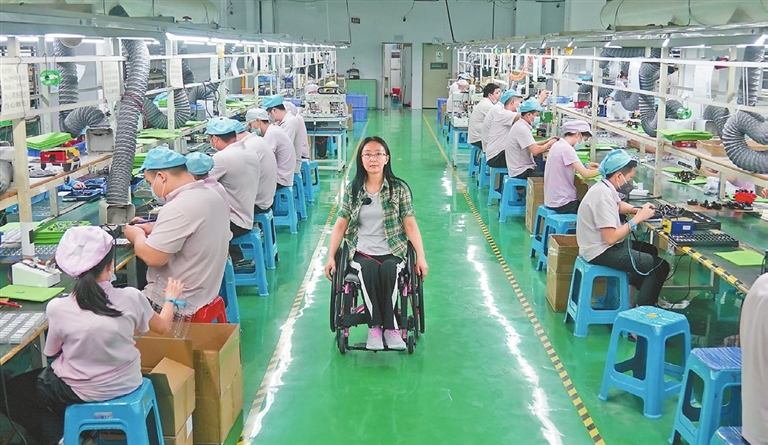 Editor’s Note: This past Saturday (Dec. 3) marked the International Day of People With Disability (IDPWD). In celebration of this occasion, Shenzhen Daily is presenting a special report about Yu Jijing, a brave, strong woman who has been supporting people with disabilities despite her own wheelchair-bound condition for the last 14 years in Shenzhen. Through her story, we hope to increase more people’s awareness of the situation of people with disabilities. Lin Lin linlin_szdaily@126.com IT was a midsummer evening in Shenzhen. A dozen people with disabilities chatted casually at the lobby of the office building of Shenzhen TV in Futian District, waiting for the beginning of a ceremony to award enterprises doing outstanding jobs in taking corporate social responsibility. A little girl in a white gauze dress was in the lobby with her parents who were both physically challenged. When a photographer proposed to take a family photo for them, the girl looked very happy. Then she walked up to a woman in a wheelchair, affectionately inviting her to join them. The woman was Yu Jijing, a staffer of Shenzhen Kechaoda Technology, a mobile phone manufacturer in Longhua District that has been supporting people with disabilities and helping them find jobs. Yu joined the company in 2011, and since then has been taking care of the recruitment, training and management of their employees with disabilities. Born in the 1970s, Yu grew up in Yumen, a city in Northwest China’s Gansu Province that was once known for its oil fields. At the age of 18, Yu got a job at a power plant. Like many of her peers, she was looking forward to a future with a happy marriage, lovely kids and a satisfying job. However, not long after she started working, a neurological disorder struck her suddenly and left her in a paralysis that has since confined her to a wheelchair. “Back then, I felt I was worthless,” said Yu. “I couldn’t do anything after I fell sick. I lost my job. I lost everything. I stayed at home every day.” Yu’s illness also came as a blow to her family, especially to her father, a retired soldier who expected much from his children. Yu recalled that her father was very frustrated and often drowned his sorrows in alcohol. Sometimes when he lost his temper, Yu talked back. “Do you think it’s my choice to be like this? Do you think I don’t want health? Do you think I don’t want to work and support you and mom like other people do for their parents? But what can I do? Should I die?” She cried to her father. Her flipping-out drove her father to silence, but didn’t make her feel better. Deep down in her heart, she desired to work, gain independence and be a pride of her father. “But I didn’t have the courage to leave home. I didn’t know what I could do with my disability. Every day before I slept, I prayed to the gods, asking them to take my life in my sleep,” Yu recalled. In 2006, Yu’s family moved back to their hometown in Deyang, Sichuan Province. On May 12, 2008, when the Wenchuan earthquake happened, Yu was at home, lying on her bed. When everything in her room started to shake, she wanted to escape, but she couldn’t move. All she could do was to wait for death. “Then many things occurred to me. I realized that I was too young to die. I was not married, I was never in love, and I didn’t even have the chance to go to the seaside,” she said. The instinct to survive drove Yu to do everything to crawl out of the building. Her mom rushed to her when she found her. “It’s okay, it’s okay,” Yu’s mom told her, holding her in her arm while the young woman kept trembling. “Then I looked up at the sky, and said to myself, ‘it’s good to be alive,’” Yu recalled with tears in her eyes. After the earthquake, Yu decided to pull herself together and live life to the fullest. She started job hunting on the internet and found a clerical position at a factory in Shenzhen. Growing up in Yumen, a city in the Gobi Desert, Yu had dreamed of going to the seaside since she was a child. “When I found the job, I was thinking this job could also take me to the seaside,” she said. Despite her family’s disagreement, Yu came to Shenzhen alone. “I told them I would leave home even if I ended up begging,” she told us. Since then, her 14-year adventure has taken her to a successful career and turned out to be a journey with love, one that lifted her out of her early struggles. The first day she arrived at the factory, she was stunned. “In my hometown, I seldom saw people with disabilities. But in the factory, I found people with different kinds of disabilities. To be honest, I was intimidated at that moment. I never realized that there were so many people with disabilities in China,” said Yu. As she spent more time with her colleagues, she gradually found a sense of belonging. “We lived together. We worked together. After work, we often had Chinese barbecue together. We didn’t earn much back then. But we were so happy,” she said, a big smile on her face. In retrospect, one of the most exciting things Yu has done with her friends was watching an Andy Lau concert at the Hong Kong Coliseum. As physically challenged people, Yu and her friends were allowed to check in earlier. She still remembered how people lining up for check-in looked at them with envy when they were pushed into the venue by the stadium’s staffers. “In the past, when I watched TV and saw people getting excited and crying at concerts, I thought they were faking their tears. But when we were at the concert and looking at our idol Andy Lau, we burst into tears and couldn’t help screaming his name,” Yu recalled. On the eve of the Spring Festival in 2009, not long after she came to Shenzhen, Yu broke her legs. Her colleagues sent her to the hospital, waited for her while she was in surgery, and took care of her through the holiday. “It was very heart-warming. I was far from home, but in Shenzhen,