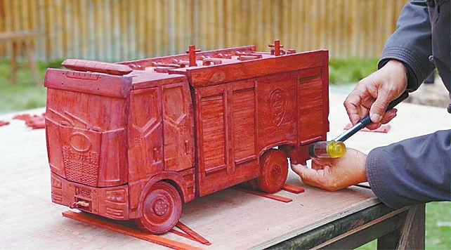 Wang follows an ancient Chinese mortise and tenon technique, which means no nails or glue are involved in the entire process. He has also made several wooden toys for his grandson using the same technique. He created a model of the China Pavilion in the 2010 Shanghai Expo. Among all the items, a walking Peppa Pig and a bubble blowing toy are his grandson’s favorites.