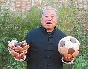 Recently, the 65-year-old man used beech wood and black walnut material and cut it into 32 pieces of wood, and then polished it into radians and chiseled different structures. When they fit together perfectly, it became a soccer. Its structure can be freely disassembled and assembled for play. It can’t be kicked around like a real soccer, but it is suitable for display as a craft or a toy or a gift.