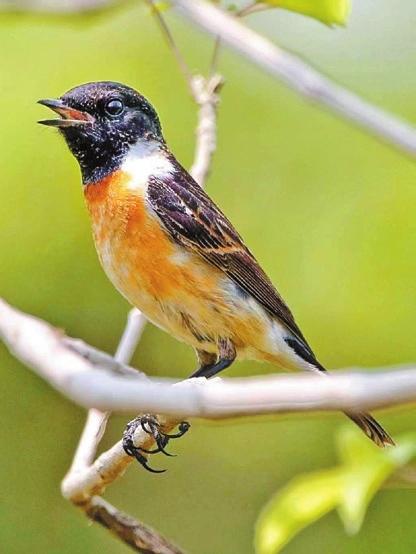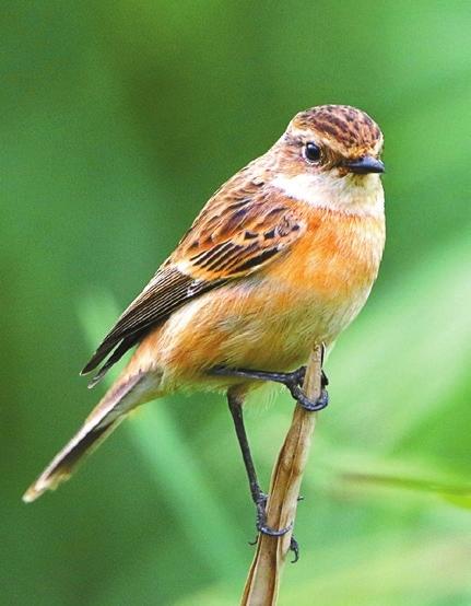 Measuring only 12 centimeters in length, the Amur stonechat (Saxicola stejnegeri) is a beautiful bird that visits our city en route its migration path. Curiously, some small numbers can even be considered as residents, seen almost all year long in the northernmost parts of Shenzhen. The male stonechat has a striking black hood that extends to the back of the body and the wings, in contrast to a fascinating broad white patch on the sides of the neck. White patches are also present on the wings and the lower back; the tail is black. The bird’s chest is of a beautiful orange coloration that fades into a paler shade down the belly. Females are light brown with stripes on the head, with a softer white patch on the lateral parts and downside of the neck, and a paler brown to white coloration on the chest and down the belly. This fantastic bird enjoys tall grasses or open areas where they hunt primarily for small invertebrate animals like insects, snails, and worms. They also feed on seeds and fruit. Their breeding period runs from March to August, when they find their mates; females have often been observed to mate with several males. After building the nest, a female stonechat can lay up to six eggs per clutch, which she incubates for about two weeks. The hatchlings remain under the care of their parents for several more days. This bird is parasitized by the common cuckoo , so it is essential to think of this bird as a fundamental part of the healthy dynamics of our city’s ecosystem. |