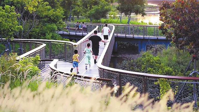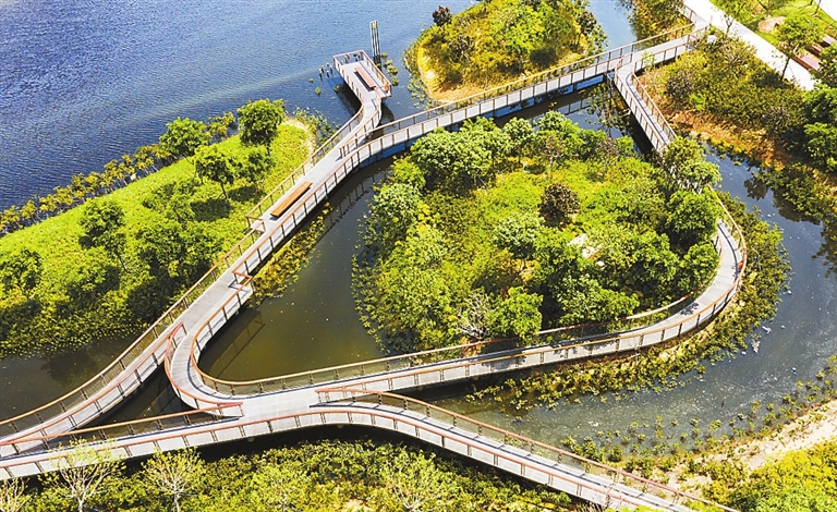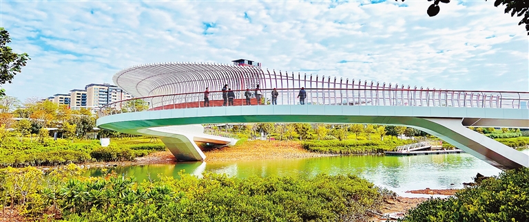 GUIWAN Park in Qianhai has always been a popular spot for Shenzheners to escape the concrete jungle and reconnect with nature. Now this belt-shaped park has added three bridges, which stitch together the north and south halves of the park that are otherwise split by a river. The C-shaped bridges, named Xianyun, Lingbo and Yuanmeng, provide convenient access to different sections of the park. Hidden sprinklers for cooling in the summer and decorative lights on the bridges help visitors relax and comfortably enjoy the new vistas of Qianhai. Guiwan Park features seawater and freshwater wetlands and vast green parkland. Plants in the park have created a more resilient ecology while supporting a variety of habitats and retaining and cleaning storm water. The landscape is a feast for the eyes and in the park’s vibrant public spaces, people can camp, picnic and play within recreational facilities. If you walk westward along the river, you can get to two seaside parks, Qianhai Stone Park and Qianhai Performance Park, where you can enjoy the picturesque Qianhai Bay seaview and spectacular sunsets. Qianhai Stone Park is famous for a big yellow stone, which has the word “Qianhai” engraved on it. In Qianhai Performance Park, you can have a distant glimpse of the Bay Glory Ferris wheel. Both are comfortable, dynamic and recreational parks in Qianhai’s continuous green ecological network. Guiwan Park 桂灣公園 Metro: Line 9 to Menghai Station (夢海站), Exit C Qianhai Stone Park 前海石公園 Metro: Line 5 or 9 to Qianwan Station (前灣站), Exit D Qianhai Performance Park 前海演藝公園 Metro: Line 5 to Guiwan Station (桂灣站), Exit E(Cao Zhen) |