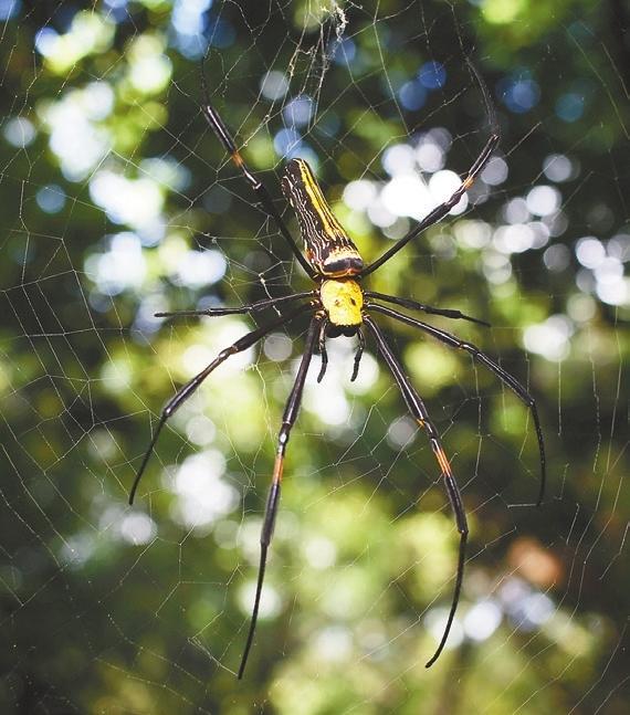 Probably one of the scariest yet most fascinating animals in Shenzhen is the giant golden orb weaver (Nephila pilipes), a large-size spider with remarkable traits. A widespread mistake people make is labeling spiders as insects. It doesn’t take much effort to differentiate spiders (with four pairs of legs) from insects, which have three. The correct label for spiders is “arachnid.” Female spiders are larger in size, growing up to 5 or 6 centimeters in the body, measuring an impressive 20 centimeters with their legs spread. Males are really small, roughly 5mm in body size, displaying one of the most considerable disparities in animal sexual dimorphism. The body of this fantastic spider is elongated, and it can show variations in color, from brown to gray or even reddish and purple. Its legs are black with yellow bands, and the last segment of the legs is longer than the rest. Both pedipalps (buccal structures) are bright red and yellow, and the spinnerets (web-making structures) are black. The silk of the golden orb weavers contains a compound that shines yellow under the sunlight, hence their name, and the net is powerful enough to capture all sorts of insects, even small birds or bats, which they can include in their diet. Although the giant golden orb weaver can inject toxins into its victims, it is not known for any harmful effect on humans. There are no reports of aggressive behavior or attacks on people. If you find one on your walk through the park, admire it and let it continue playing its role in maintaining a healthy and dynamic ecosystem in our city. |