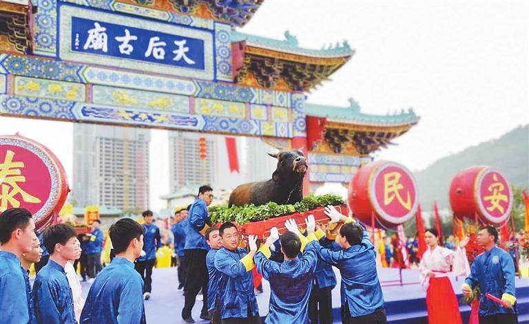 Cao Zhen caozhen0806@126.com “FAREWELL to the Sand” (辭沙), a 600-year-old folk custom to worship Mazu, the goddess of the sea, took place at Tianhou Museum near the Chiwan Port in Nanshan District on the morning of April 29, the first grand Mazu event at the museum since it became a national-level cross-Strait exchange base in February. More than 1,000 people from the mainland, Taiwan, Hong Kong and Macao attended the special ceremony that was hosted by the Shenzhen Municipal People’s Government’s Taiwan Affairs Office and Nanshan District People’s Government, organized by the Taiwan Democratic Self-government League’s Shenzhen Committee, Nanshan District Taiwan, Hong Kong and Macao Affairs Bureau, Nanshan District Culture, Radio, TV, Tourism and Sports Bureau, and co-organized by the Nanshan District Mazu Culture Exchange Association. Mazu, also known as Tianhou or Heavenly Queen, is the patron saint of seafarers and is highly respected in the coastal regions of southern China. The 23rd day of the third lunar month, falling on May 12 this year, is Mazu’s birthday. Every year, as her birthday approaches, various commemorative activities are held in coastal areas. The “Farewell to the Sand” ceremony is a unique folk custom of the Chiwan Tianhou Temple. Originating in the Ming Dynasty (1368-1644), the custom has been passed down for more than 600 years. Before the ceremony began at 7:30 a.m., representatives from Shenzhen and Taiwan exchanged Mazu-themed cultural artifacts. After welcoming the deity and reciting blessings, the worship guests boarded ships to send the sacrifice, a cattle skin stuffed with straw, to the sea. In ancient times, when emperors worshipped the gods, cattle, goats and pigs were used as sacrificial animals. The Chiwan Mazu ritual used to be performed on the beach; thus it is called “Farewell to the Sand.” In the early Ming Dynasty, the ritual was for imperial officials to worship the sea goddess and the sea before their envoys; from the mid-Ming through the early 20th century, more seafarers practiced this ritual in hope for Mazu’s blessing for safe voyages. Since 2014, “Farewell to the Sand” has been held at the Chiwan Tianhou Temple instead of on the beach due to the reclamation. This grand folk ceremony embodies people’s yearning for a better life and plays a vital role in uniting overseas Chinese. The “Farewell to the Sand” ceremony is also a Guangdong intangible cultural heritage. “We and Taiwanese compatriots share the same roots and the Mazu culture is an inseparable part of traditional Chinese culture,” said Zhou Baomin, head of the Nanshan District Culture, Radio, TV, Tourism and Sports Bureau. “We hope the two sides of the Strait can achieve mutual understanding and closer ties through the Mazu cultural exchange activities. Both sides will work together to make contributions to the great rejuvenation of China.” Many Taiwanese guests attended the “Farewell to the Sand” ceremony in Shenzhen for the first time. Impressed by the grand event, they said they would invite more Taiwanese people to join the Shenzhen event in the future and hope that both sides of the Strait can work together to promote exchanges and propel development. “Taiwanese compatriots will have a deeper understanding of the mainland through this activity,” said Chen Zhonghe, chairman of the Taiwan Merchants Association of Shenzhen. At another Mazu worshiping activity held April 27, many Taiwanese participants expressed that Mazu is a common belief of the people on both sides of the Strait, and by experiencing the worship on the mainland, they have deeply felt the shared cultural heritage between the two sides and hope to promote cultural exchanges to enhance mutual understanding. Fan Xuanting from Kaohsiung, who visited the mainland for the first time, said the mainland was different from what he imagined and he would introduce the mainland to his friends in Taiwan and also consider studying here in the future. Legend has it that Mazu lived in the 10th century on Meizhou Island in Fujian Province, where she dedicated herself to helping her fellow townspeople, and died attempting to rescue shipwreck survivors. Later, people worshiped Mazu incorporating a host of beliefs and customs. Deeply integrated into the lives of coastal Chinese, Mazu culture is an important bond that promotes family harmony, social peace and the cultural and ethnic identity of these communities, as well as an emotional bond to unite overseas Chinese. In 2009, the Mazu beliefs and customs were included on UNESCO’s intangible cultural heritage list. The original Tianhou Temple inside the Tianhou Museum in Chiwan was built by imperial order in the late Song Dynasty (960-1279) and was said to be as large as 600,000 square meters and have 99 gates. From 1405 to 1433, Chinese mariner and diplomat Zheng He commanded expeditionary treasure voyages to Southeast Asia, the Indian Subcontinent, Western Asia and East Africa. He was believed to have been protected by Mazu, so the temple was refurbished at that time. The old temple by the sea used to be an essential stop for ancient envoys traveling to Southeast Asia, and this “Farewell to the Sand” ritual was an important tradition. After several reconstructions in the past centuries, the temple now covers 28,000 square meters and the museum also enjoys overseas fame. In February this year, the Tianhou Museum was designated as a national-level cross-Strait exchange base along with eight other places in China. According to the Taiwan Affairs Office of the State Council, the designation provides more opportunities for compatriots on both sides of the Taiwan Strait to reflect on the past, experience the culture, improve their kinship and develop their economies together. |