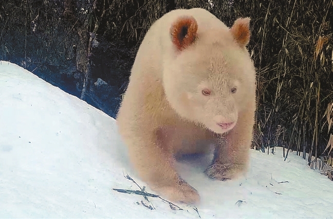 THE world’s only known all-white panda has been captured on infrared cameras in the Wolong National Nature Reserve in Southwest China’s Sichuan Province, the reserve management authorities said Saturday.