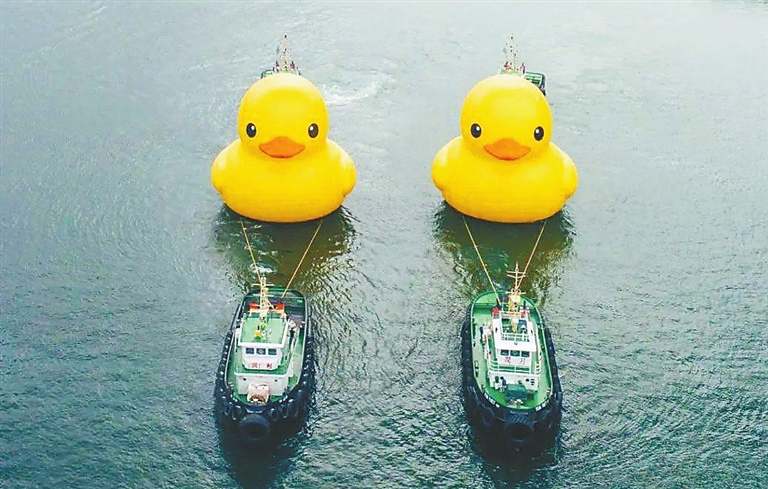 In a test run for the installation, the two outsized bath toys were spotted being tugged by boats in the waters off Tsing Yi, the city’s fifth largest island in May. At 18 meters tall, they are slightly larger than the one that made headlines when it was installed in Hong Kong 10 years ago.