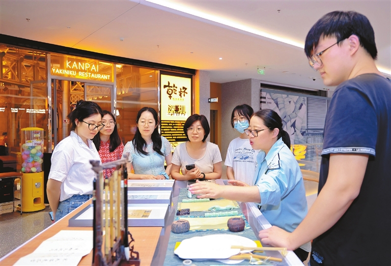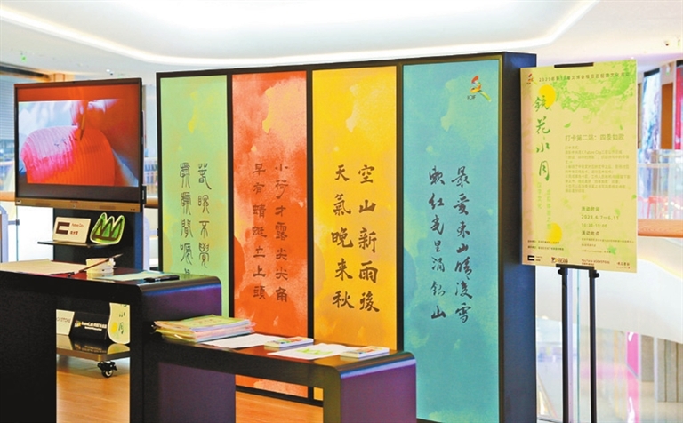 Cao Zhen caozhen0806@126.com AN essential part of Chinese culture and identity, Chinese characters have been admired for centuries not only for their aesthetic appeal but also for their cultural and historical significance. During the 19th China (Shenzhen) International Cultural Industries Fair (ICIF) running from June 7 through Sunday, C Future City in Futian District held Chinese character-themed events in its public area, at Tsutaya Bookstore and at the teamLab exhibition. A poetry activity invited visitors to appreciate the elegance and magic of some ancient Chinese poems that portray the four seasons with vivid and nuanced words. The event was held in a public space that was remodeled as an ancient Chinese study room with brushes, ink, paper and inkstones. A traditional Chinese screen printed with poems was painted in green, red, yellow and blue to symbolize the four seasons. Local artist Tang Ping led participants to read poems, write calligraphic works and discuss Chinese character knowledge. Children were invited to guess oracle-bone characters and color them. Through this event, the participants perceived how Chinese characters embody the essence of Chinese culture through their symbolism, form, structure and meaning, making them an irreplaceable and valuable aspect of Chinese cultural heritage. During the ICIF, visitors enjoyed a fun Chinese character game, “Story of the Time When Gods Were Everywhere,” at the teamLab exhibition. In the game, when people touched the ancient Chinese pictographs that represent mountains, trees, birds, etc. that were projected on the wall, images appeared and stories were born. The objects that emerged from the symbols influenced one another and were influenced by the actions of participants. At Tsutaya Bookstore, readers were invited to write notes to experience the charm of Chinese character writing. Visitors also claimed bookmarks or keyrings with Chinese pictograph patterns. Through participating in these light-hearted events incorporating traditional practices and high-tech games, visitors attained new understandings of Chinese characters and became inheritors of Chinese character culture. |