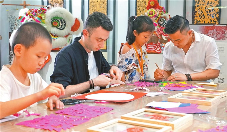 Windy Shao windysjf@hotmail.com PAPER cutting is a Chinese folk art with a long history of using simple tools to make beautiful patterns to record people’s lives in ancient time. As a kind of intangible cultural heritage reflecting the history of regional culture and traditional changes, the ancient art has its unique cultural and aesthetic values. In a modern metropolis such as Shenzhen, there are quite a few intangible cultural heritage promotion centers. One center, located at Mission Hills Maker in Longhua District, promotes Meixian paper cutting, which originated from the expression of good wishes during festive days. It is one of the most popular forms of traditional art showcasing rural folk festival activities in local areas. Story of heritage inheritor Wang Ning, an inheritor of Meixian paper cutting, came to Longhua District in 2016 to work full-time on the inheritance of the intangible cultural heritage. Wang continues to explore new ways to give the traditional art a new life in the modern era. “Traditional paper cutting employs single colors like red paper with white background. I want to give it a new perspective, so I have incorporated different color blocks to make it more appealing to young people.” To make the works more vivid, Wang uses materials such as special rice paper and cardboard. “The color of the cardboard can change the traditional feature of paper cutting being flat.” “Every art has its own language and stories, and at first the artist himself should have strong feelings about it before he can influence others,” he said. Since the establishment of the intangible cultural heritage center at Mission Hills Maker in 2019, Wang has held over 100 public welfare events to promote the traditional art, including giving lectures at schools and hosting workshops for free. Louay Ali Dib from Syria participated in a workshop hosted by Wang during a warm-up event for the 19th China (Shenzhen) International Cultural Industries Fair (ICIF) on June 3. “He gave me the feeling that he just loved what he’s doing. When you love what you are doing, you really put so much passion into it. I can feel he’s teaching from his heart,” the Syrian youth said while commenting on Wang’s workshop. “When he gave me those feelings, it was easy for me to follow along what he said. And that made it easier for me to understand and learn it a bit faster,” said Louay, who has shown interest in traditional Chinese arts. Louay, a computer engineer, said he likes the stories from “The Classic of Mountains and Seas,” a Chinese classic compilation of mythic geography and myth. Techs revive traditional arts Intangible cultural heritage inheritors like Wang are exploring new ways to make traditional arts more appealing to younger generations. The theme “How to help traditional arts thrive in the new era?” was a focus on a forum about traditional craftsmanship Saturday at Mission Hills Maker, one of subvenues of ICIF. Thirteen experts and inheritors discussed topics such as digitization, technology and creativity, emphasizing the importance of preserving cultural heritages while also promoting innovation and industrial upgrading. Zang Xiaoge, vice dean of the School of New Media Art and Design at Beihang University, cited embroidery of the Kazakh ethnic group as an example and outlined the entire process of using cutting-edge digital technologies to collect, store, display and disseminate traditional craftsmanship as well as promote inheritance and innovation. Zhu Bingfan, general manager of Guangzhou Wenmu Culture, introduced the application of new technologies in the dissemination of intangible cultural heritages, such as using 3D motion capture technology to record folk dances, martial arts and repair broken unearthed cultural relics, as well as replicating traditional crafts using 3D printing. According to a Research Report on the Integration and Development of Chinese Handicrafts and Technologies released by Wen Lijun, editor-in-chief of Chinese Handicraft magazine, the vast majority of practitioners believed that the proportion of traditional craftsmanship and new technologies should be 70% and 30%, respectively, to highlight the major roles of traditional craftsmanship. Unlike practitioners emphasizing the essence of traditional crafts, more consumers support a 50-50 ratio of traditional craftsmanship and technology, the report said. However, both practitioners and consumers considered “characteristic features” to be the most important for an art product, followed by other features as quality, beauty and functionality. Wen suggested that traditional craftsmen should be brave enough to exhibit their own “sense of technologies.” |