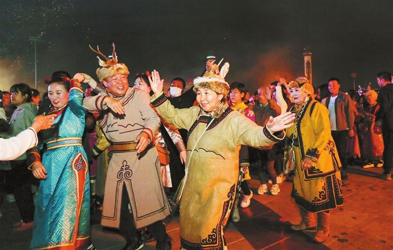 Locals and tourists dance around a bonfire at the 33rd Oroqen Bonfire Festival in Oroqen Autonomous Banner, Inner Mongolia Autonomous Region, on Sunday. The festival kicked off Sunday, bringing tourists a good chance to appreciate the culture of Oroqen ethnic group. China News Agency |