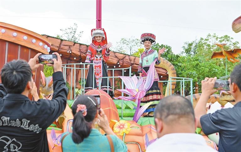 Performers wave to the audience during a float parade of the Torch Festival in Chuxiong Yi Autonomous Prefecture, Yunnan Province, on Thursday. The Torch Festival, from Thursday to Saturday, is the biggest event in the Yi calendar. China News Service