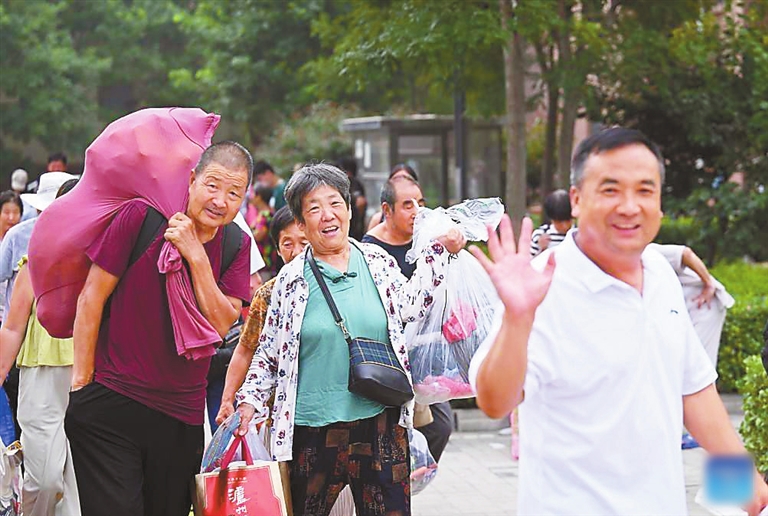 Villagers on their way back home from a relocation site in Xiqing District, North China’s Tianjin Municipality, on Sunday. All of the over 37,000 relocated villagers from the Dongdian flood detention and storage area have returned to their homes as floodwater receded. Xinhua |