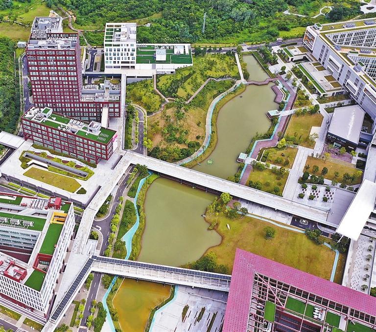 SHENZHEN Technology University in Pingshan District has an open campus without any surrounding walls, allowing direct access for visitors who are eager to explore the campus. Its elevated walkways, with a total length of 10 kilometers, connect various buildings, providing convenient passage to explore the entire campus. Along the way, there are shaded areas to shelter from the sun or rain. Multiple wetlands surround the campus, offering a peaceful spot for picnics or leisurely walks, while enjoying the far views of Tiantou Mountain and Maluan Mountain in the south. (SD News) |