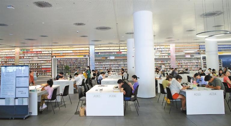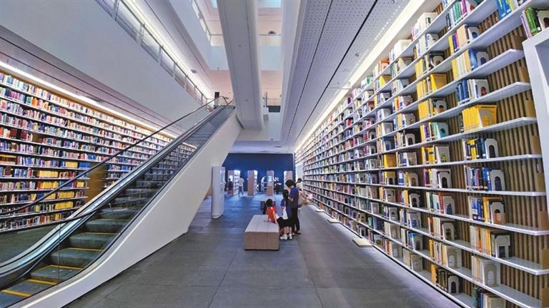 SHENZHEN Library’s north division and Shenzhen Art Museum’s new site, with a public square in between, have started their trial operations. The two new cultural landmarks are located near the Hongshan Metro Station in Longhua District. The library currently has only opened its 3,500-square–meter first floor to readers; the services include borrowing and returning books, a digital twin lab and book donation. The library ultimately will house an extensive collection of 8 million books and feature a three-floor-deep underground storage area with an automatic and intelligent book sorting system. Once a reader submits a book request, the books will be retrieved by an automated carriage, which can travel from the underground floors to the top fifth floor for immediate pickup by the reader. The new art museum includes an exhibition area of 20,000 square meters, with an artwork storage room of nearly 6,000 square meters, 18 exhibition halls and an outdoor area for exhibiting sculptures. The art museum is displaying paintings, video art and photographic works selected from its collection. (Cao Zhen) |