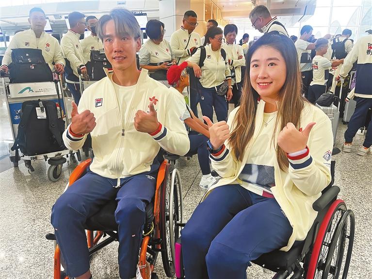 Members of the Hong Kong delegation for the Hangzhou Asian Para Games pose for a picture before departing for Hangzhou, East China’s Zhejiang Province, on Wednesday. The Para Games will unfold from Sunday to Oct. 28, showcasing 22 sports and 564 events. China News Service |