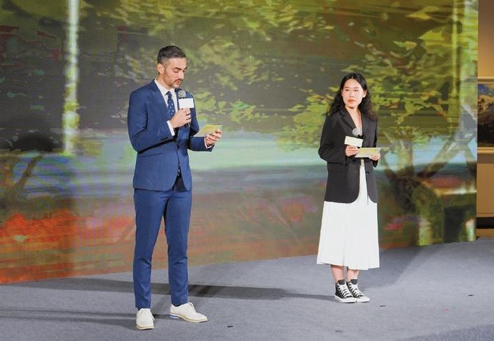 Chen Siqi vankochensq@163.com DESPITE the diversity of languages, both expats and locals were captivated by the enchanting cadence of poems at a multilingual poetry reading event Saturday. The event, titled “Shared Moments in Poetry,” held at the Guan Shanyue Art Museum in Futian District, left behind an ethereal resonance long after the final words faded into the night. Expats from five countries graced the stage, reciting verses in their native tongues of Italian, French, Russian, Arabic and English, touching the audience with concise words and beautiful rhythms. The themes consisted of “youth,” “innovation,” “homeland,” “dreams” and “future.” A sideline event of Shenzhen Reading Month, this gathering was hosted by Shenzhen News Group and organized by EyeShenzhen, Shenzhen Daily, and the museum. The beautiful poetry reading is like a melodious chorus. Simon Chiatante from Italy, a Shenzhen Global Communication Ambassador, mesmerized the audience with his passionate recitation of the Italian poem “Il Turno.” “I chose youth as a theme because in recent years, it’s been one of the most important things in my heart as a school teacher,” Chiatante said. “When I see the children, I remember my youth very clearly, and that has helped me to find a sort of my true self. As I think that the trustiest self is a child, so I would like always to think like a child,” he added. Tatiana Lis left the audience deeply moved as she poured her affectionate and emotional reading of a poem dedicated to her beloved motherland, Belarus. Kristopher Kiely from the U.K. shared his sentiments about the boundless possibilities of Shenzhen’s future through the English poem “Hope is the thing with feathers.” Imane Sbai evoked sentiments of hope through her Arabic poetry, while Patty Avotriniaina touched the audience with a French poem full of innovative ideas. The event culminated with a collaborative poetry reading from the five expats. Together, they read “Across Shenzhen,” a heartfelt ode to the city crafted with unwavering love by Chiatante. “In six little parts, I tried to summarize the most important aspects of Shenzhen. Each theme was represented by a natural element of the city. I tried to put in one point at the same time — my love for Shenzhen,” Chiatante said. (Continued on P2) (From Page 1) His story with poetry began in his youth when the lines and rhythms effortlessly danced through his heart, eventually inspiring him to create his own verses. The event commenced with a rousing performance of the song “Road of Our Dreams” by the Shenzhen University International Choir. This youthful song showed how the overseas students have witnessed China’s efforts in bolstering global economic progress. Shin Moon-sub, the song’s composer and writer, shared with Shenzhen Daily his inspiration for the lyrics. During an exchange event held at Guizhou University in Southwest China’s Guizhou Province this June, Shin was impressed with the accomplishments of the Belt and Road Initiative over the past 10 years, ultimately inspiring him to pen the lyrics. “Everyone here has youthful spirit, and they pursue their dreams. This song, as an energetic and symbolic opening performance, could represent the aspirations of the energetic youth,” Shin said. |