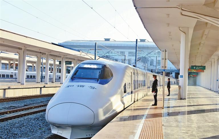 Train D9958 departs from Longyan Railway Station in East China’s Fujian Province, on Tuesday. The 92-kilometer line, designed for speeds up to 250 kilometers per hour, connects Longyan and Wuping in Fujian. Wuping, an old revolutionary base, thus ended the history of not being connected to the railway. China News Service |