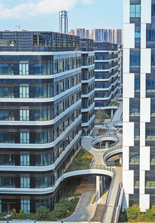 Chen Xiaochun 654789759@qq.com AFTER spending four and a half years as the project manager of Phase 2 of the Biomedical Enterprise Accelerator project in Pingshan District, José Antonio Vigara álvarez de Perea was pleasantly surprised by the project’s execution speed and efficiency. “We’re talking about 700,000 square meters, with a total of 15 buildings, and everything has been constructed in approximately four years. After witnessing the entire process in this large-scale project and going through each phase, it’s true that everything has been implemented surprisingly efficiently. Despite encountering numerous challenges, there are projects in Europe that, although less prominent, demand more time than what we’ve dedicated to this project,” Vigara álvarez de Perea stated. The Spanish architect first arrived in China in 2013 for an internship in Shenzhen, where he worked for six months on the Huaqiangbei renovation project at Zhubo Design studio with renowned Chinese architect Feng Guochuan. Huaqiangbei, renowned as “China’s No. 1 Electronic Street,” houses a diverse array of electronic devices that propel and inspire innovations. “It was a quite fascinating exercise due to the intricate nature and significance of the project,” he recalled. After spending a year in China for his internship, Vigara álvarez de Perea moved to Brazil, working there for a year. Subsequently, he returned to Spain, and ultimately, in 2015, he made the decision to go back to Shenzhen, aiming to develop and capitalize on the opportunities burgeoning in the city. He worked for nearly two years in the same company he interned for. In late 2018, he joined the German architectural firm KSP Engel to work on the development of Phase 2 of the Biomedical Enterprise Accelerator project in Pingshan District. The project stands as the first green ecological park for the integration of biomedical production in China. Contribution to the project “As the project manager in China, I was based here at the Shenzhen office of KSP Engel. The task involved not only developing the project but also coordinating with Germany, where Peter Feuerbach, the project’s design chief, was based. He was the main person with whom we carried out the entire project development,” Vigara álvarez de Perea explained. For him, the project presents several fascinating aspects as it seeks to integrate industrial elements with a modern lifestyle approach. The objective is to redefine the traditional industrial campus concept, transforming it from a mere workplace to a space where one can truly live. The key to the project lies in seamlessly merging nature, lifestyle and comfort, all integrated into the working setting, while also considering more demanding tasks associated with industrial production. “From the outset, the project’s primary emphasis was on landscape and urban integration, coupled with pedestrian integration. The aim was to streamline various pathways, ensuring a more pleasant experience for individuals in the park. The goal is for people not only to perceive the campus as a workspace but also to feel at ease in this environment,” the project manager explained. In front of the project, there is a wetland park that separates it from Phase 1. Therefore, the objective was to integrate both phases through the platforms traversing the park, thus establishing a natural environment by connecting the two projects. Phase 2 has a total of 15 buildings, encompassing facilities for biomedical accelerators, pharmaceutical equipment accelerators, and iconic structures dedicated to research and development offices, dormitories, a conference center, commercial spaces, and other public amenities such as a health center and a bus station. Along the central axis, an elevated platform has been designed to enhance pedestrian connectivity and circulation, while keeping vehicular traffic and parking access on the ground floor. The platform extends towards the park, thus creating a tangible link between phases 1 and 2. Another noteworthy element influencing the project’s uniformity is the treatment of loading and unloading openings on the laboratory facades. Instead of using roll-up shutters that could give an industrial appearance, the decision has been made to integrate these openings into the facades. The panels located in the lobbies are operable, allowing for the mobility and transport of heavy machinery. Challenges The project initiated earthmoving activities in late 2019, and foundation construction commenced in 2020. Spanning across 700,000 square meters with a total of 15 buildings, including one with a height of around 200 meters, the entire project has been completed in approximately four years. Considering the project’s substantial scale and relatively small team, they encountered quite a few challenges right from the start. Coordinating and managing tasks proved to be particularly demanding, as they were responsible for designing and coordinating landscaping, facade, planning, architecture, facilities and interior aspects. During the construction process, as happens in all countries, various issues arose, and it was essential to comprehend the situation at each moment. “In this part of the process, the participation of Chen Zhaohua, the project design director from China State Construction Engineering Corporation, the construction company, was also crucial,” he said. According to Vigara álvarez de Perea, managing the project is akin to playing a card game, where achieving success in every aspect is challenging. Instead, it is crucial to identify the key points. “Setting strategic boundaries and sessions is necessary. Thus, I consider communication, empathy, and understanding to be pivotal aspects in this process,” he said. He added that the coordination with the construction company and the client (Shenzhen Pingshan District Industrial Investment Service Co. Ltd.), coupled with the intention to achie